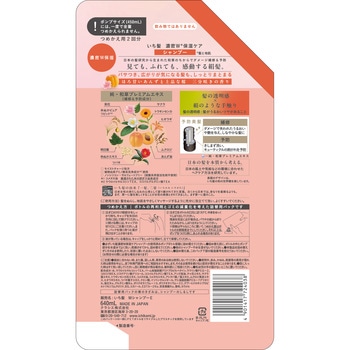 日本の髪を本質から考える。日本の髪研究から生まれた和草のちからでダメージ補修&予防する予防美髪ケアシリーズ髪の透明感と、絹のような手触り補修&予防成分「純・和草プレミアムエキス」配合モイストチャージ処方植物由来アミノ酸系洗浄成分使用ノンシリコン・サルフェートフリー処方ほろ甘いあんずと上品な桜三分咲きの香りパサつき、広がりが気になる髪も、しっとりまとまる