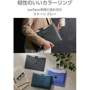 上質でなめらかな合成皮革素材を使用した、Surface Pro12インチ専用のスリーブ型インナーケースです。 Microsoft Surface Pro 12と合わせて使えるカラーリングです。 別売りのキーボードと端末に合わせたスリム設計で、かばんに入れて持ち運ぶときもスペースを取りません。 面ファスナーで留められるベルト付きで、タブレットの落下を防いで本体を守ります。 内側には起毛素材を使用し、本体を細かい傷から優しく保護します。 ※Surfaceは、米国 Microsoft Corporationの米国およびその他の国における登録商標です。