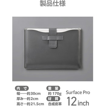 適合Surface Pro 12インチ ※別売りのキーボードを含む材質合成皮革質量(g)170内寸(mm)276×14.6×192 ※参考収容寸法寸法(幅W×奥行D×高さH)(mm)300×20×215内容量1個