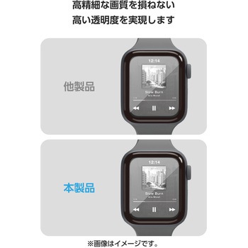 高硬度10Hの強化ガラスを採用し、画面の美しさを損ねずに傷や汚れから保護する、高透明・指紋防止タイプのApple Watch用フルカバーガラスフィルムです。
