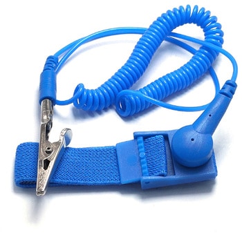 作業者の体に帯電した静電気を逃がすことを目的とした、有線タイプの手首バンドです。伸縮性のあるコイルコードにより、作業中の動きを妨げにくい設計です。手首部は柔らかい素材を採用し、長時間作業時の装着性に配慮しています。作業台や接地ポイントに接続しやすいワニ口クリップを装備しています。電子部品の組立、検査、修理など、防静電対策が求められる作業環境での使用に適しています。