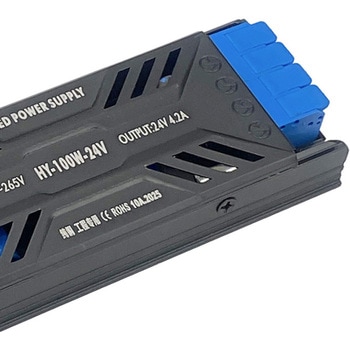 厚さ2.4cmのスリムボディ!狭いスペースにも設置可能出力電圧DC24V高耐久性本体は優れた放熱性をもつアルミ筐体ファンなしで静かに冷却過電圧/過電流/過熱/過負荷 保護回路内蔵定電流出力なのでチラつきなしシンプルな配線で取付簡単より高い変換率と強力な安定性をもつ銅100%トランス調光不可/非防水タイプ