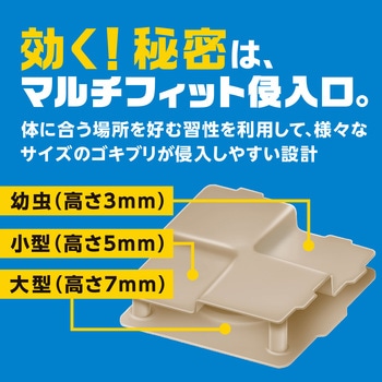 すべてはゴキブリを見ないために。あらゆるすき間にフィット。12の効果でメスの持つ卵、薬剤抵抗性ゴキブリ、巣のゴキブリにも置いたその日から効く。お部屋にフィットするグレージュ色。