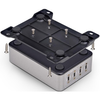 安全でスマートな設置機能:約3mのロック機構付きUSB-Cケーブルを2本同梱。4ポートすべてにねじロック式USB-C端子を採用し、抜けや緩みを防止。テーブル下や筐体内への設置に便利なVESA 100×100対応のマウントブラケットを標準装備。Noble Wedge、Kスロット、Nanoロックに対応