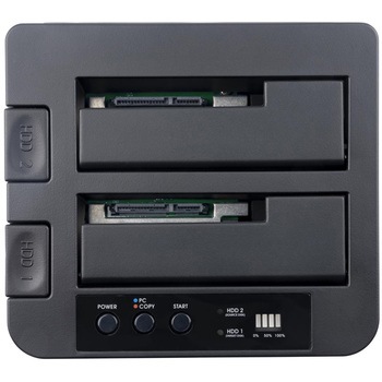 SATAドライブのコピーと接続に対応:PCに接続せず単体で2.5インチ/3.5インチSATAドライブのクローンが可能。HDDドライブの接続スタンドとしても使用でき、USB経由でSATAドライブ内のデータへすばやくアクセス可能