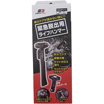 緊急時の脱出ツール。軽い力でガラスを粉砕。シートベルトカッター搭載。専用ホルダー付。