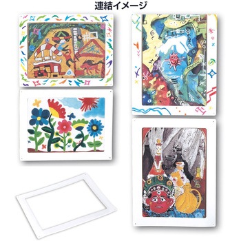 4切作品を展示できる樹脂製の吊り額縁です。1枚につき連結部品が2個付属します。タテ・ヨコどちらにも連結して展示ができます。