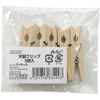 木製のばね式ミニクリップ5個セット!メモクリップやインテリアに!