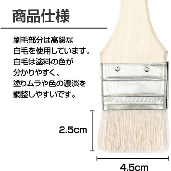 水性塗料、ニスにも使える45mm幅の平刷毛です。軸がまっすぐのため握りやすく、手早く塗ることができます。