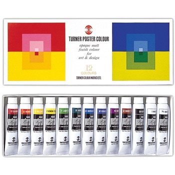 紙箱に入ったポスターカラー8色セットです。箱から飛び出さないよう留める安心ベルトが付属します。