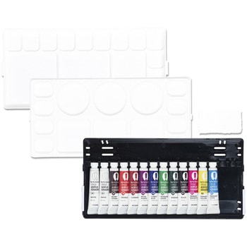12色12mlチューブ各1本+ホワイト12mlチューブ1本、パレット2枚、ミニタオル、混色表付