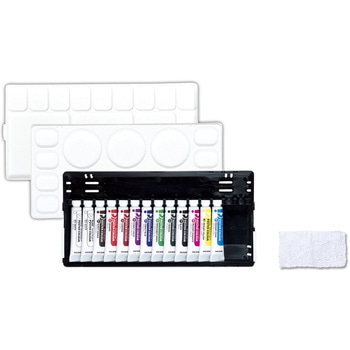 3原色入りの絵具セット!25cmまでの定規がセットできるケースに収納!3原色入りの絵具セットを25cmまでの定規がセットできるケースに収納しています。基本の12色13本の絵具にパレットケース、ミニぞうきんが付属しています。