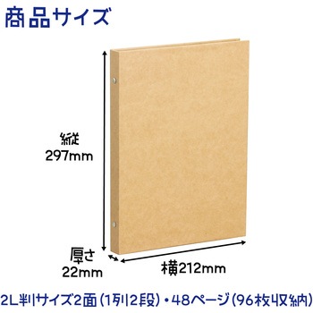 212×297×厚さ23、2L判ポケット(127×178)、2面(1列2段)、48ページ(96枚収納)