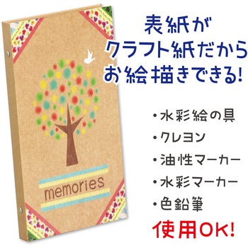L判サイズの写真を1ページ3枚、合計144枚収納できるアルバム。水彩絵の具・クレヨン・油性マーカー・水彩マーカー・色えんぴつが使用できる!