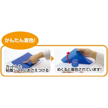 銀紙に光が反射してステンドグラス風のカラーセロハン作品ができあがる!タッチカラーはカットした黒台紙に裏面粘着シートをはがした部分に押しあててこするだけで着色できる、全く新しい透明着色材です。混色・ぼかし表現もできます。