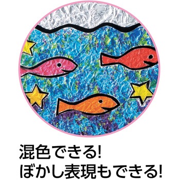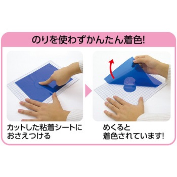 タッチカラーはカットした黒台紙に裏面粘着シートをはがした部分に押しあててこするだけで着色できる、全く新しい透明着色材です。混色・ぼかし表現もできます。