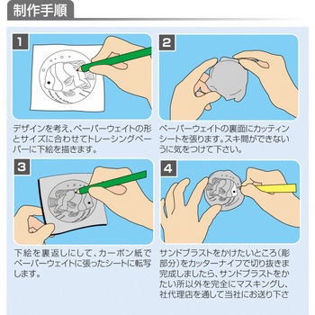 手軽にサンドブラスト作品作りが楽しめる素材のセット!サンドブラスト加工に必要なガラス素材、カッティングシート、トレーシングぺーパー、カーボン紙、カッターナイフのセットです。図案さえあればすぐに作業が進められます。