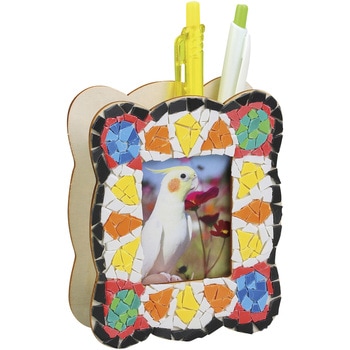 手でちぎれるプラモザイクで自由にデザインができる、フォトフレームにもなる小物入れです。