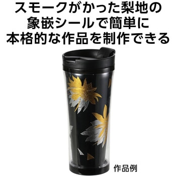 スモークがかった風合いの梨地象嵌調シールで象嵌風のタンブラーをデコレーションできます。