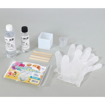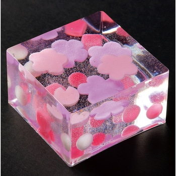 不透明粘土と透明レジンで涼しげな水菓子風フェイクスイーツが作れるキット!不透明粘土、2液性レジン、シリコンモールドが入ったオールインワンキットです。錦玉羹や水無月羹風の涼しげなフェイクスイーツを作ることができます。