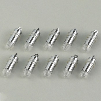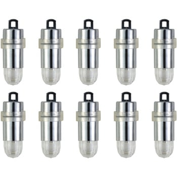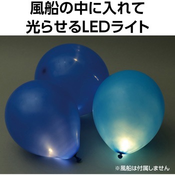 風船の中に入れられて、あたたかい色味で光るLEDライトの10個セットです。ライト1個につきボタン電池3個が必要です。