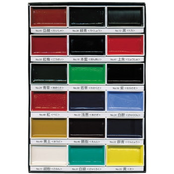 日本の伝統色をまとめた、水に溶けやすく鮮やかに発色する水彩絵具の18色セットです。
