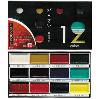 日本の伝統色を厳選した、水に溶けやすく鮮やかに発色する水彩絵具の12色セットです。