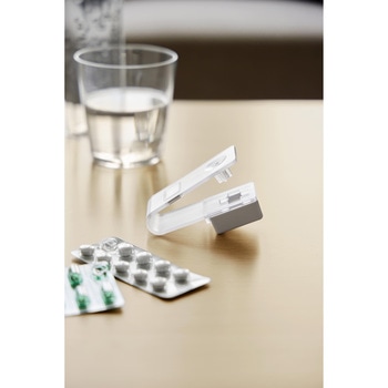 シートを挟んで押すだけで簡単に錠剤を取り出せる錠剤オープナーです。錠剤は受け皿に溜まるので取り出しやすく、スライドするだけでサッと取り出せます。個数や種類が一目でわかり、飲み忘れ防止にも役立ちます。マグネット内蔵なので、ウォーターサーバーや冷蔵庫の横などの手に取りやすい場所に設置でき、お薬タイムがよりスムーズになります。