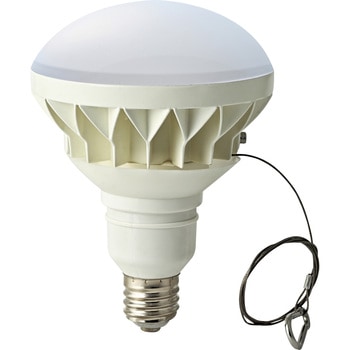落下防止ワイヤー(1m)が付いた屋外用防水対応レフ型LEDランプです。防水器具でご使用ください。※断熱材施工器具・密閉型器具には使用できません。※人感センサーや自動点滅装置には使用できません。※調光不可