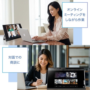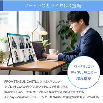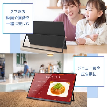ワイヤレスで簡単にスマホやタブレットのミラーリング、ノートPCの「画面拡張」「ミラーリング」が可能です。バッテリー内蔵で、カフェや図書館でも使用できます。縦置き・横置きをセンサーが感知して、自動で画面の向きを変更できます。Type-CポートとHDMIポート(15.6はminiHDMI)があるので、ケーブルでの接続も可能です。接続に必要なケーブルは全て付属しています。