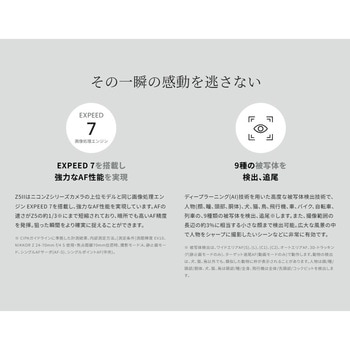 ニコンZシリーズカメラの上位モデルから引き継いだ画像処理エンジン EXPEED 7を搭載。従来のEXPEED 6の約10倍高速でデータを処理できるため、強力なAF性能や優れた被写体検出・追尾性能を実現。素早く動く被写体の決定的瞬間を逃さず、シャープに捉えることができます。