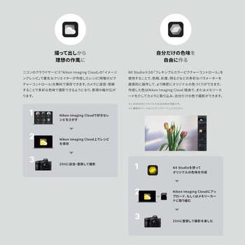 著名なクリエイターが作成した特製のプリセット「イメージングレシピ」に対応。最大9個のレシピをNikon Imaging Cloudから無料で直接Z5IIに送信できます。さまざまな画づくりを試して、自分にぴったりの表現を簡単に見つけることが可能。フィルムのような見た目や暖かく陽気な雰囲気、ムーディーなポートレートにぴったりなレシピなど、多彩なレシピで表現の幅が広がります。また、ピクチャーコントロールボタンと直感的なUIで、イメージングレシピやピクチャーコントロールへ簡単にアクセスでき、撮影中にその場で自分好みの画づくりを適用できます。