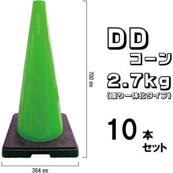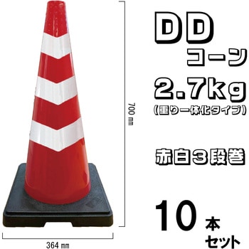本体と重りを一体化したリーズナブルな重量コーン。 上部に工事灯が設置できるように40Φの穴、重り部分には滑りを抑えるためEVA樹脂を25%配合。持ち取っ手の穴がついてるので、持ち運びも楽々です。