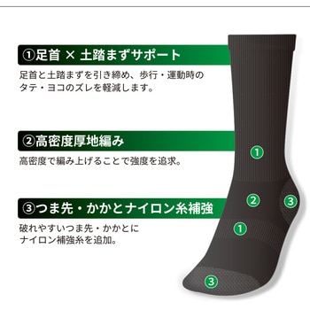 破れやすいつま先・かかとにナイロン補強糸を追加。