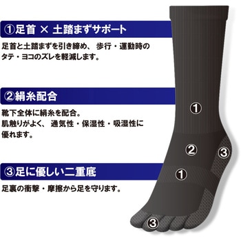 足首と土踏まずを引き締め、歩行・運動時のタテ・ヨコのズレを軽減するサポーター入り。