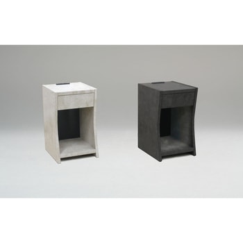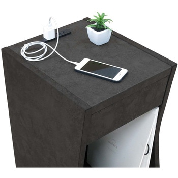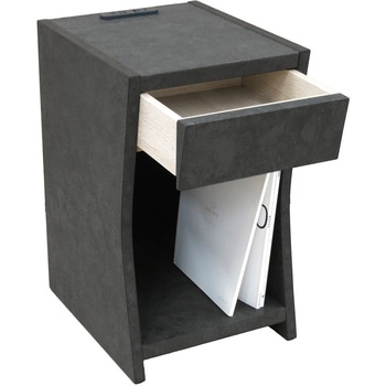 <POINT>コンパクトサイズ 幅300mm×奥行き360mmでスペースをとりません。天板 スマートフォンや眼鏡などの小物が置けます。 幅260mm×奥行355mm引出し(1杯) 眼鏡等の小物を収納するのに便利です。オープン収納 A4サイズが縦置きに収納できます。2口コンセント スマートフォンなどの充電に便利です。 埃などが入りにくいスライドカバー付きです。