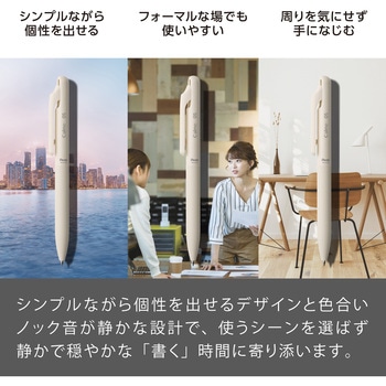 シンプルながら個性を出せるデザインと色合い、ノック音が静かな設計で、使うシーンを選ばず、静かで穏やかな「書く」時間に寄り添います。