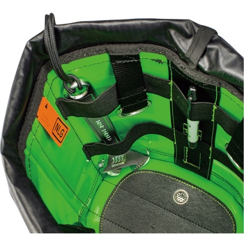 安全性と人間工学に焦点が当てて設計された軽量な工具収納用ポーチです。軽量かつ耐久性に優れたポーチであり、高所作業を行う際の必需品です。非常に耐久性が高く、過酷な環境や負荷に耐えられるように作られています。内部には、工具を安全に取り付けるために使用できる4つの耐荷重テザーポイントが備わっています。独自の開口システムにより、片手で簡単に操作でき、ポーチ内部に容易にアクセスできます。Megatexで構成されたポーチは、プレミアムな軍事規格の生地と比較して最大7倍の耐摩耗性を誇ります。外側に付いているデイジーチェーンループは、各ループ最大5kgまでの重さのアイテムを取り付けることができます。底面パネルには排水穴が設置されてます。