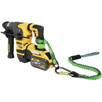 最大20kgの大型で重量のある電動工具に対応するツールストラップです。テザーテープと組み合わせることで、工具を所定の位置に固定し、ストラップが滑って誤作動を起こすのを防ぎます。視認性を高めるコントラストステッチを施した高強度ウェビングで構成されています。