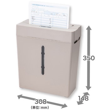 用途「タイパ」を追求した時短ハイスピードシュレッダ幅(mm)投入:216色グレージュ定格電圧(V)AC100(50/60Hz)定格消費電力(W)145(50/60Hz)本体質量(kg)3.8寸法(幅W×奥行D×高さH)(mm)308×148×350電源コード(m)1.2定格時間(分)約5(休止時間約40分)運転音(dB)約70(無負荷時)ダストボックス容量(L)約12(A4コピー用紙 約78枚/3枚細断時)細断寸法(mm)約5×37最大細断枚数3枚(A4上質紙64g/m²;)※郵便はがき/1枚(厚さ0.2mmまで)細断形状クロスカット定格細断速度(50Hz/60Hz)(m/分)5.2待機電力(W)0内容量1台