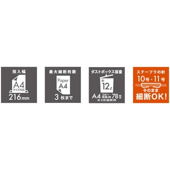 A4タテを約3秒で細断(※50Hzの場合の理論値)