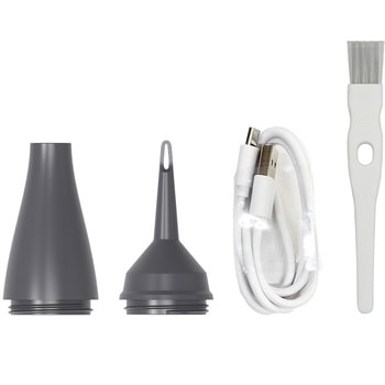 用途軽量コンパクトでコードレス 持ち運びに便利な電動エアダスター仕様●入力:DC 5V 2A●出力:弱約6.65W・中約12.3W・強約19.8W・ターボ約44 W●定格電力:46W●電源:内蔵リチウムイオン充電池( 1100mAh)●付属USB AtoCケーブル:PVC樹脂、銅/コードの長さ約80cm/白●付属ノズル2種:ABS樹脂●梱包材・緩衝材:ケーブルフィルム=PE/インナーブリスター=XPE、EPE(底面)/保護シート=EVA●風速:3段階+ターボ(弱約6・中約9・強約13.5+ターボ約17.5m/s)●動作音:≦77dB(風速ターボ時) ●モーター回転数:弱31720・中47080・強62580・ターボ83720rpm●連続作動時間:弱=約134・中=約65・強=約29・ターボ=約17(分)●充電時間:約2.5時間材質ABS樹脂色BK質量(g)約215(ノズル含まず)寸法(幅W×奥行D×高さH)(mm)約72×40.5×127.8(ノズル含まず)保証期間1年間動作温度範囲(℃)0~40内容量1個