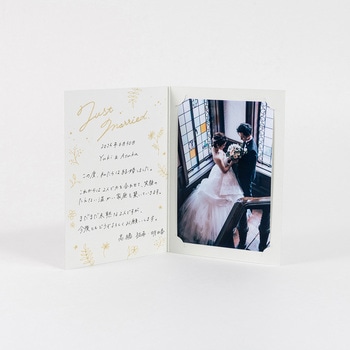 写真1枚とメッセージを贈るのにちょうどいい二つ折りの写真台紙です。