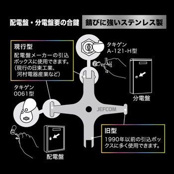 【鍵】タキゲンA-121-H型(現行型)、タキゲン0061型(現行型)、旧型×2種(1990年以前の引込ボックスに多く使用できる)