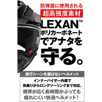 昼・夜、明るさに応じて可動できるUV400インナーバイザー付き。