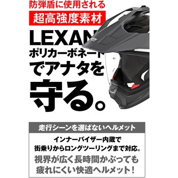 チンガードの脱着が可能なクロスオーバーへルメット。オンロードからオフロードまで、ジャンルを問わず着用いただけます。