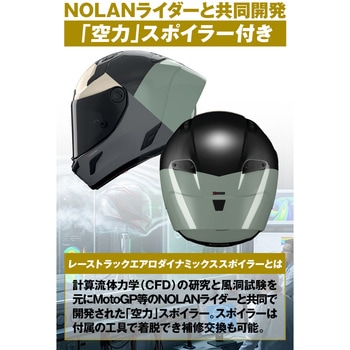 計算流体力学(CFD)の研究と風洞試験を元に、MotoGP等のNOLANライダーと共同で 開発された空力スポイラー。取り外し可能。