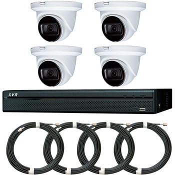 200万画素防水ドーム型カメラ4台、レコーダー(2TB)1台、同軸ケーブル20m4本セット