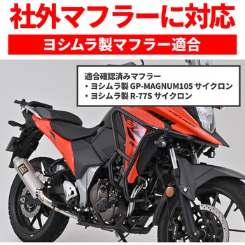 ヨシムラ GP-MAGNUM105、R-77S サイクロ ン対応モデル。ガソリンタンクに沿うデザインのパイプエンジンガード。