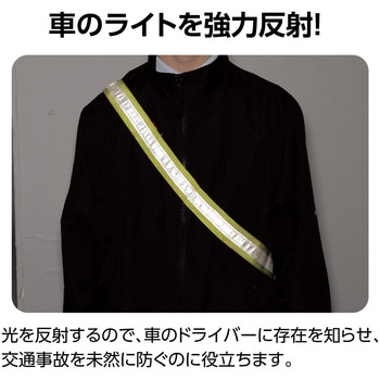 手軽に交通安全!夜間の散歩やランニングに!夜道での視認性を高める反射たすきです。光を強く反射し、ドライバーにしっかり存在をアピールすることで夜間の交通事故防止に役立ちます。軽量で装着しやすく、服の上からさっと掛けるだけで使用可能。通勤・通学やウォーキング、自転車利用時におすすめです。大人から子どもまで幅広く使えます。